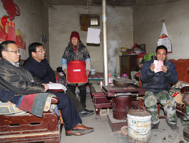 李躍民冒著嚴寒走訪了貧困戶王玉安家,為他們送去過年的慰問品和慰問金,并與王玉安促膝交談,詳細了解他和家人的身體狀況、家庭收支情況和目前存在的困難。