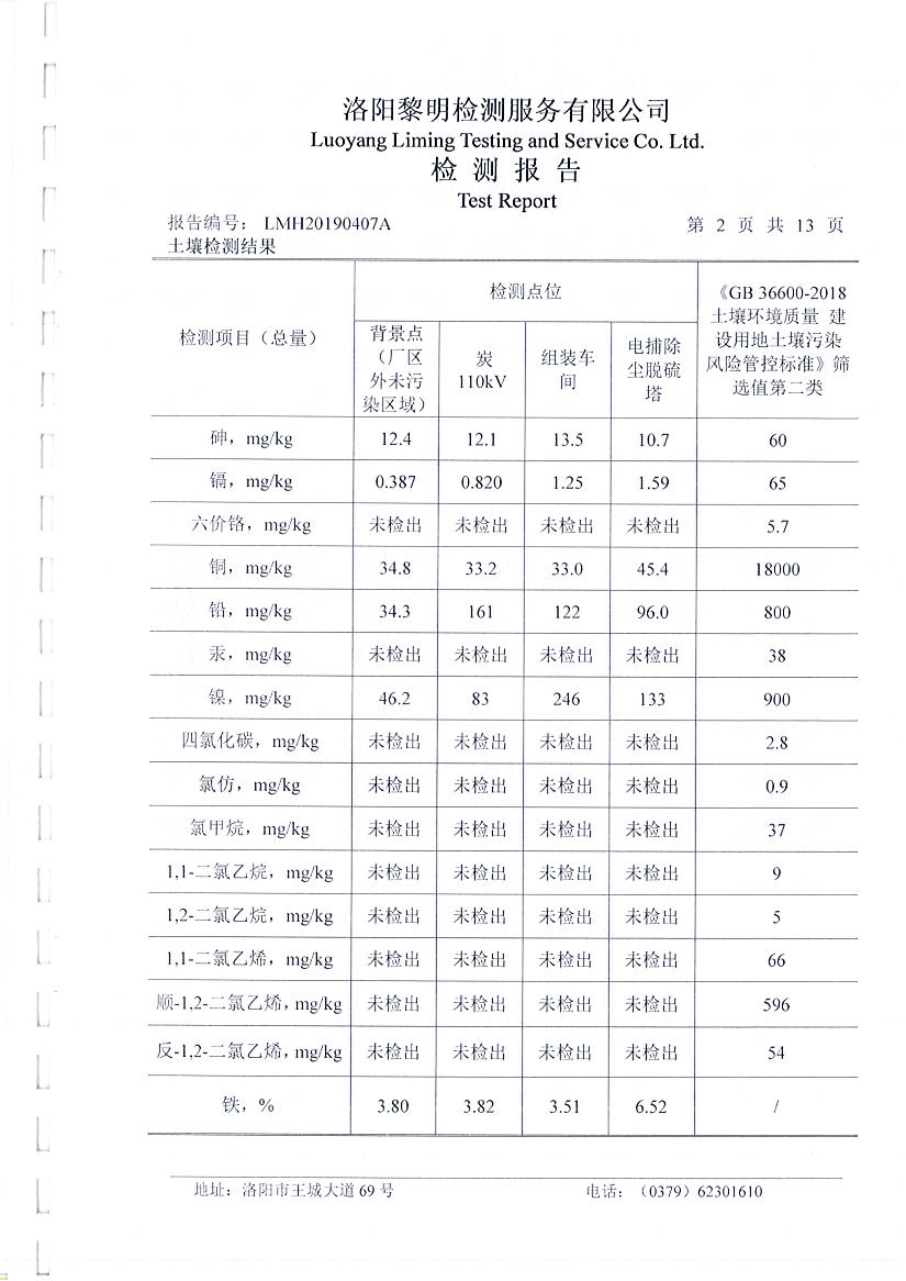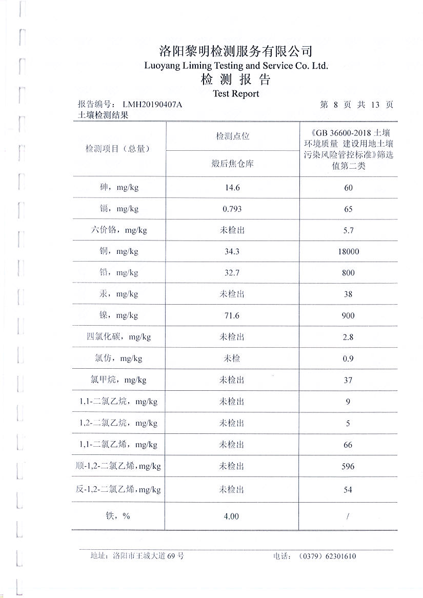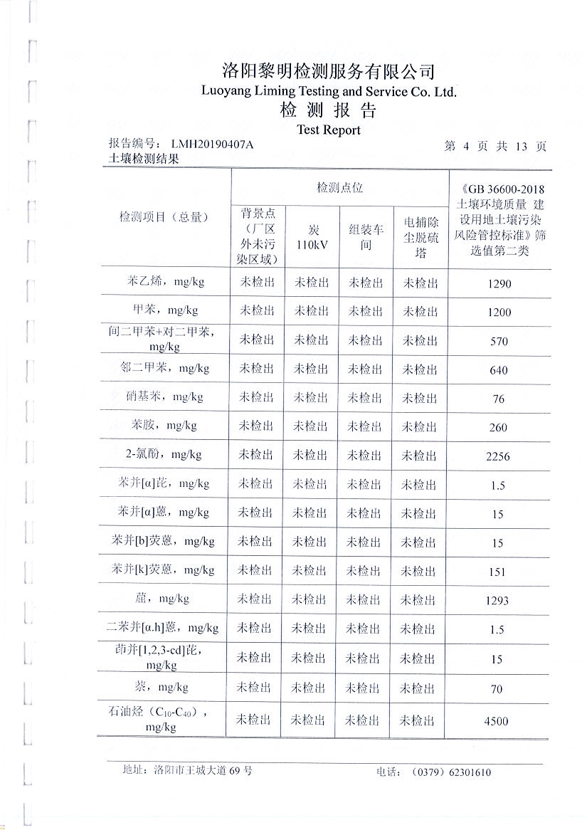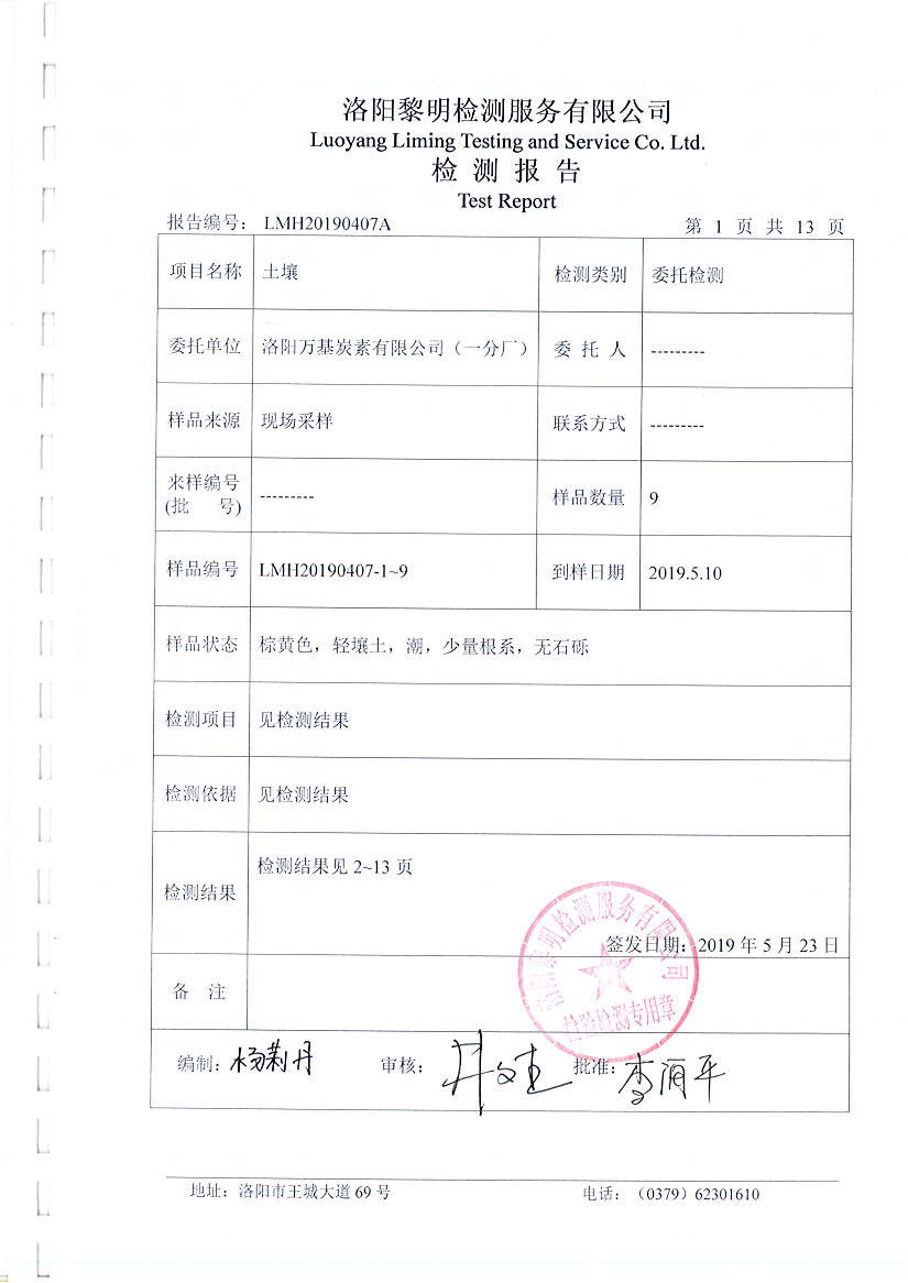 河南萬基炭素有限公司(一分廠)土壤檢測(cè)報(bào)告公示