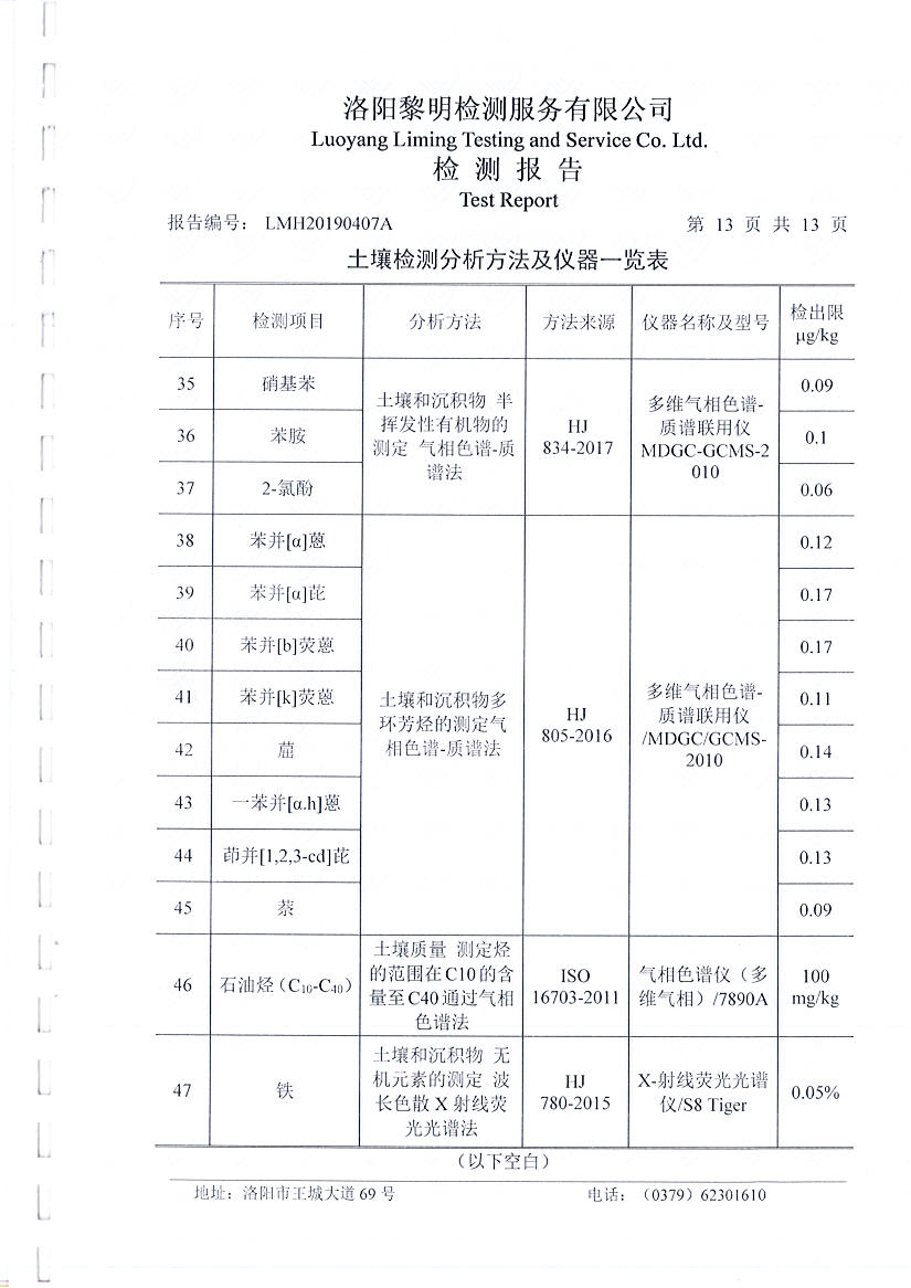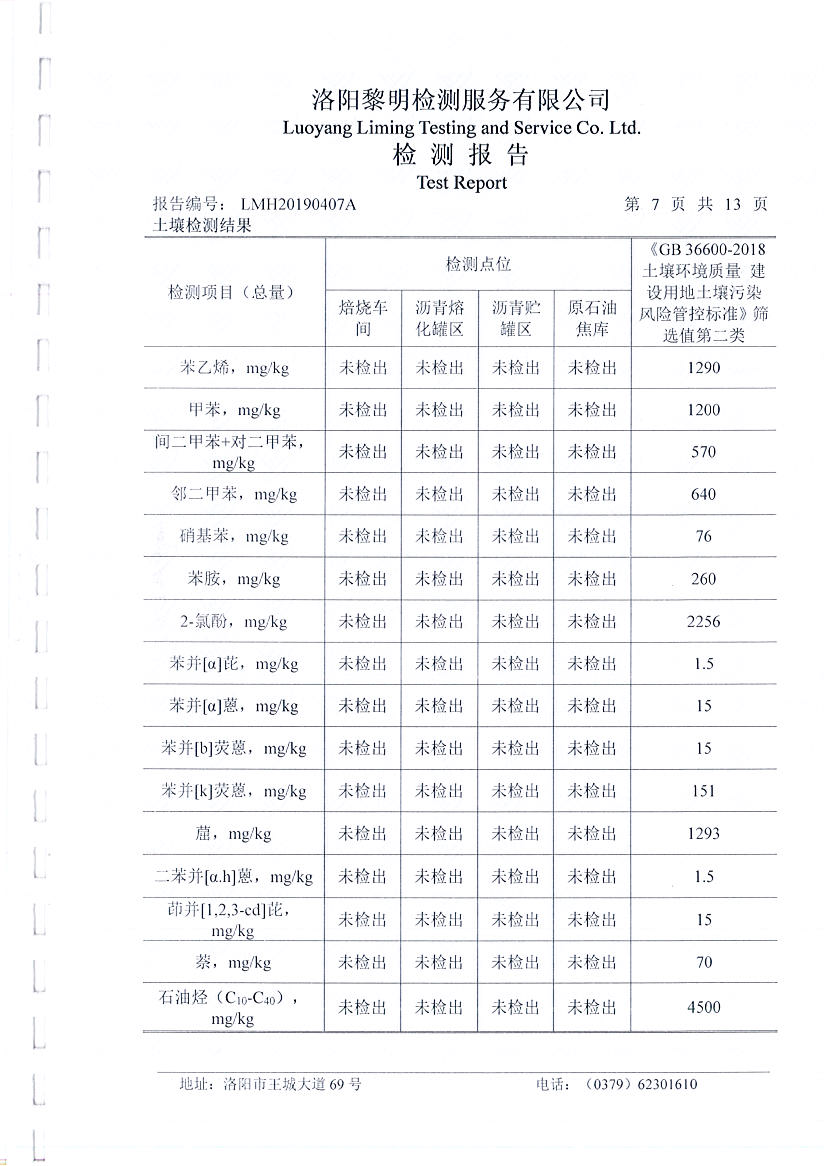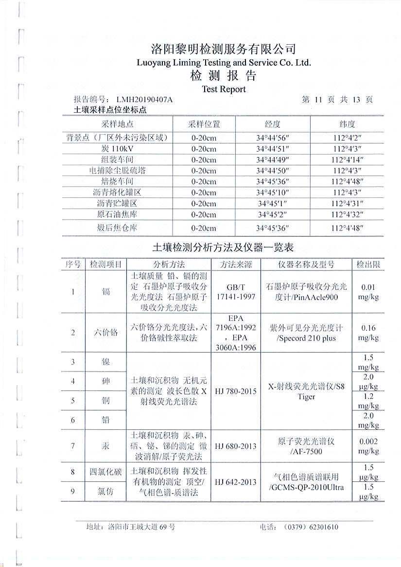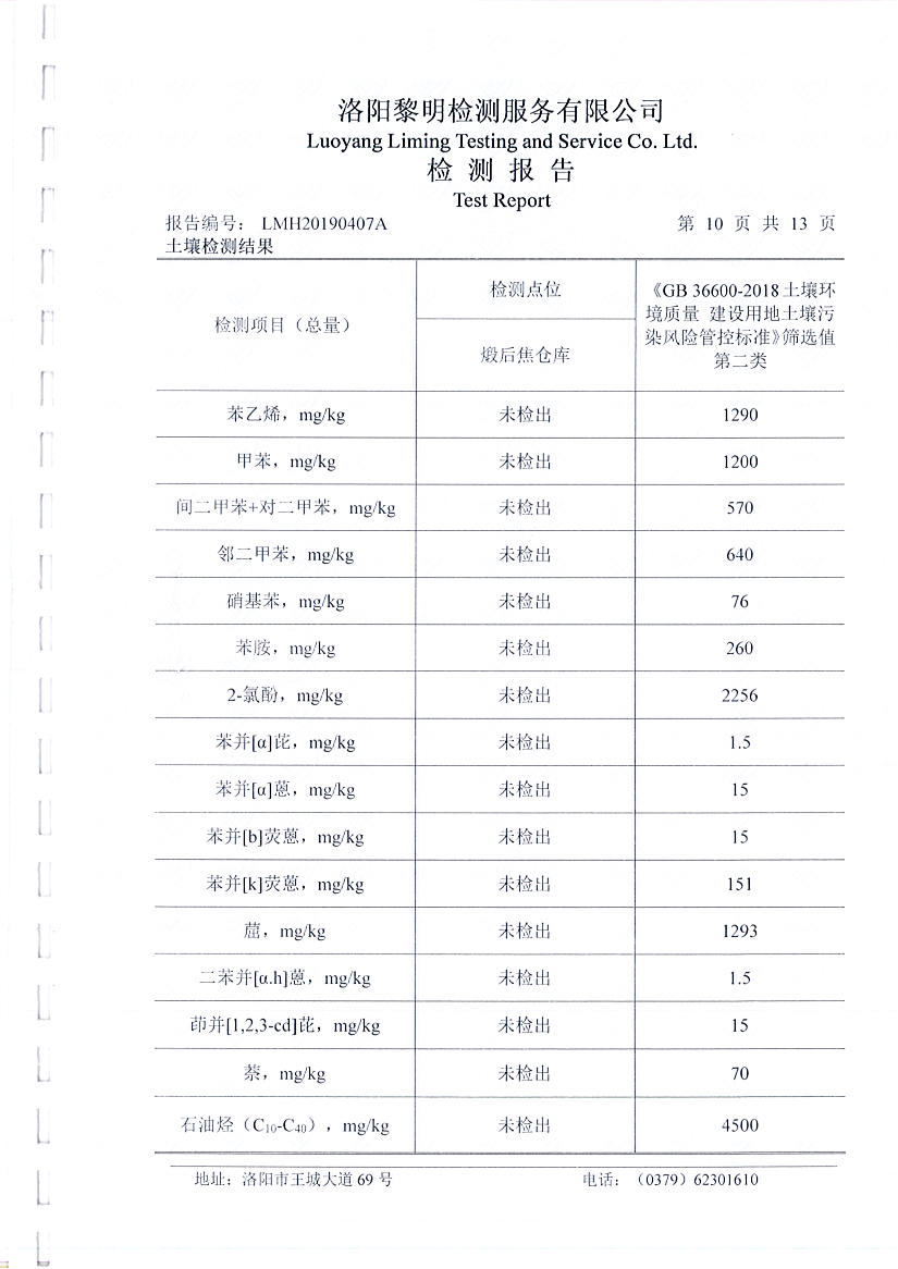 河南萬基炭素有限公司(一分廠)土壤檢測(cè)報(bào)告公示